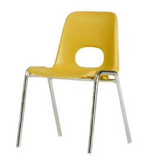 Chaise coque en polypropylène, traité anti-UV, coloris jaune, vert clair 19, vert foncé 02, rouge, saumon, bleu clair ou bleu foncé.
