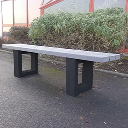 Banquette 100% plastique recyclé, composée de 3 lattes renforcées, coloris gris ou marron.