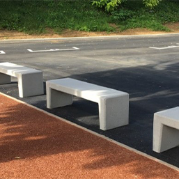 Banquette monobloc, aspect gravillonné lavé beige, ocre sablé ou gris sablé.
