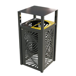 Variantes : grille écrase mégot + cendrier, modèle double flux pour tri sélectif.
