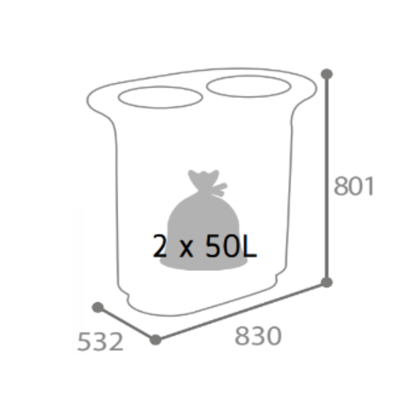 2 x 40 L avec seaux intérieurs équipés d’1 poignée de préhension.
