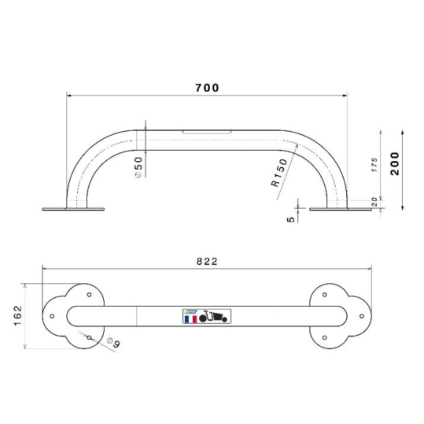 En acier Ø 50 avec couche d’apprêt + peinture poudre polyester = traitement antirouille optimal.