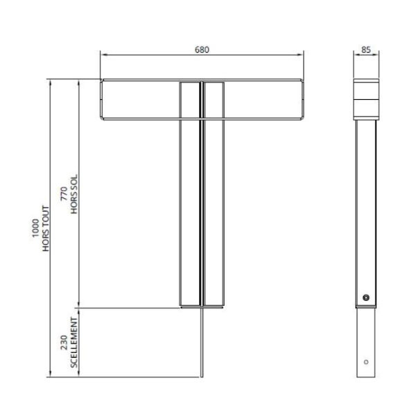Hauteur totale 1000 mm – Hors sol 770 mm.