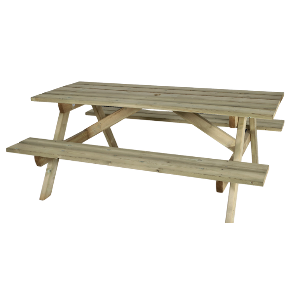 Lames d’assise et de plateau 145 x 35 mm. Piétement 95 x 45 mm.